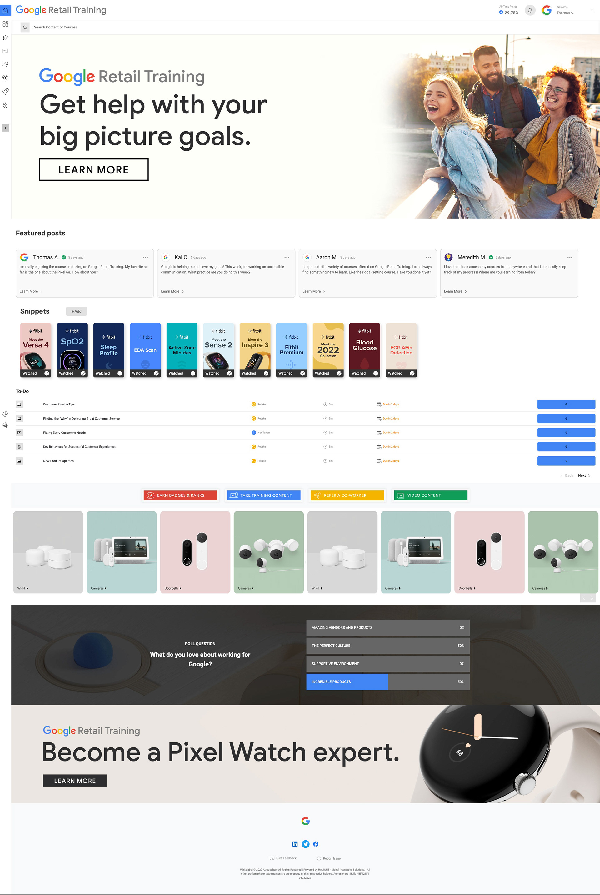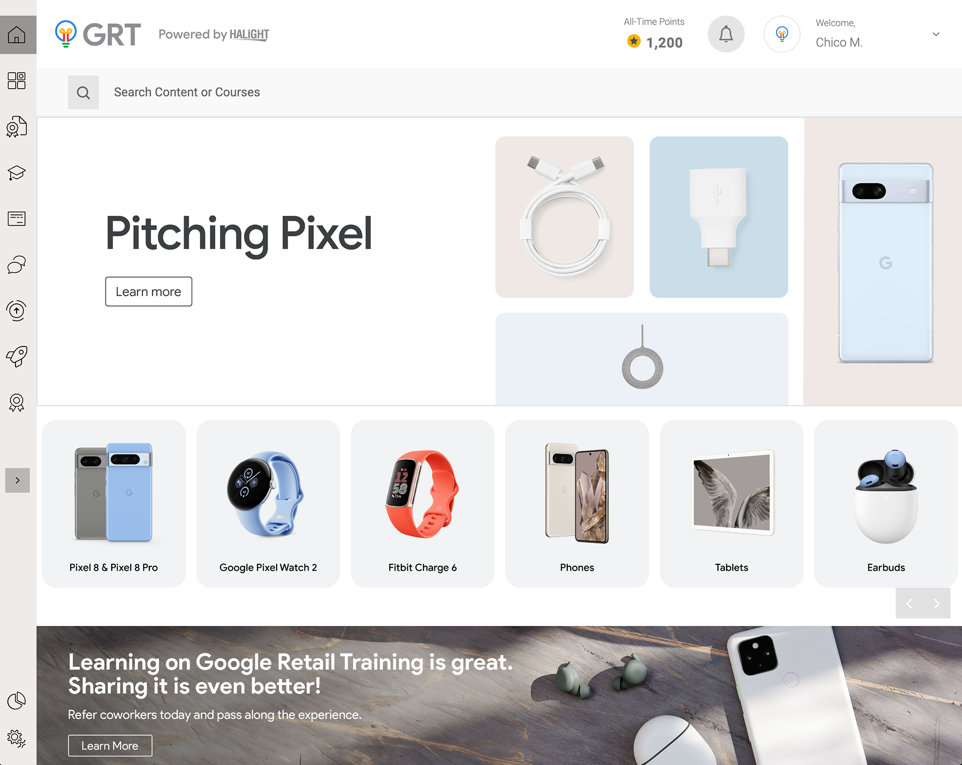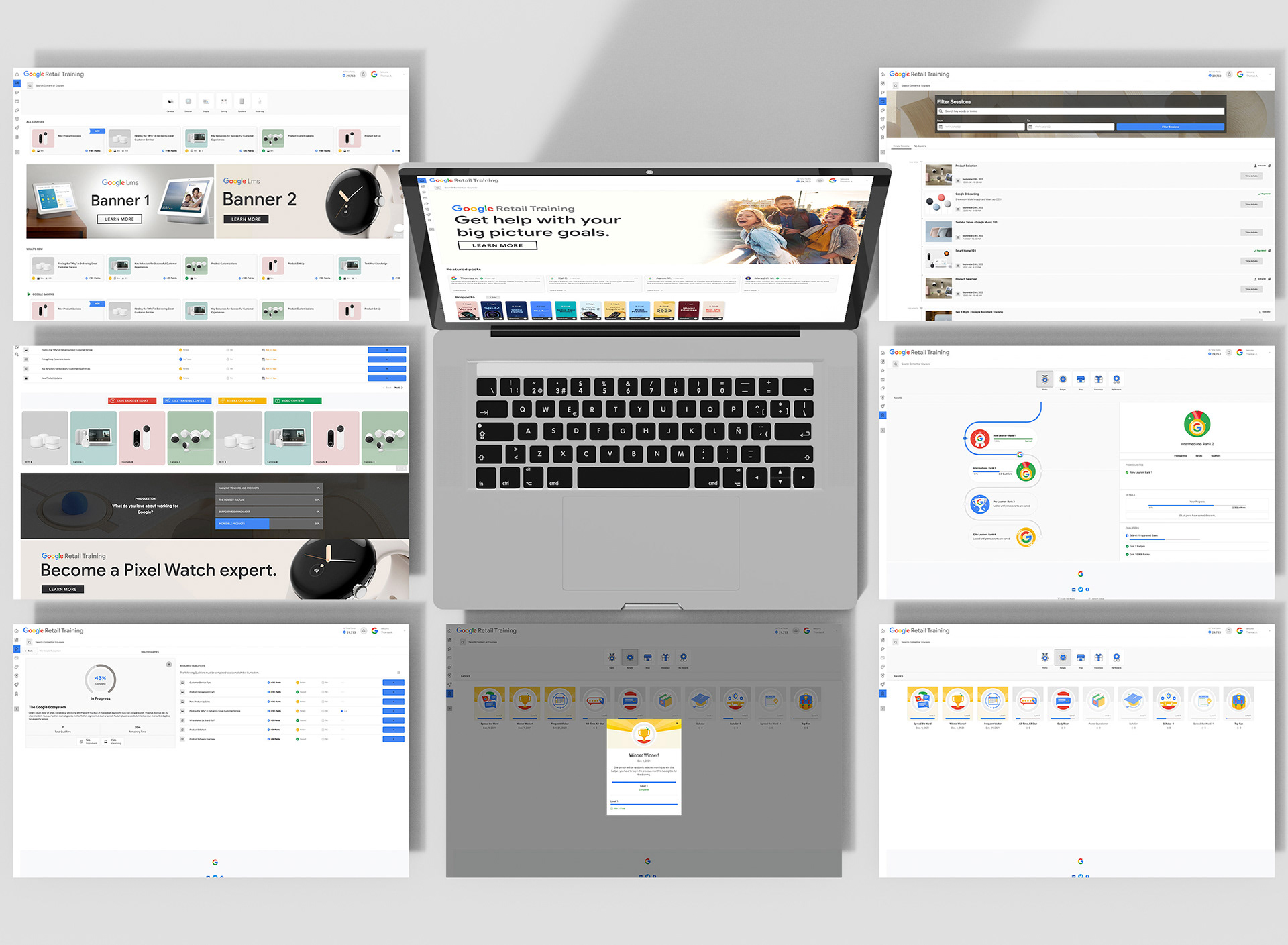 The Google Retail Training (GRT) learning management system was developed to educate retail employees on Google’s products and services. The goal was to create an intuitive and user-friendly platform that enhances learning engagement and knowledge retention. This project required a seamless blend of product design and instructional design to ensure users could efficiently acquire the information needed to promote and support Google products in retail environments.