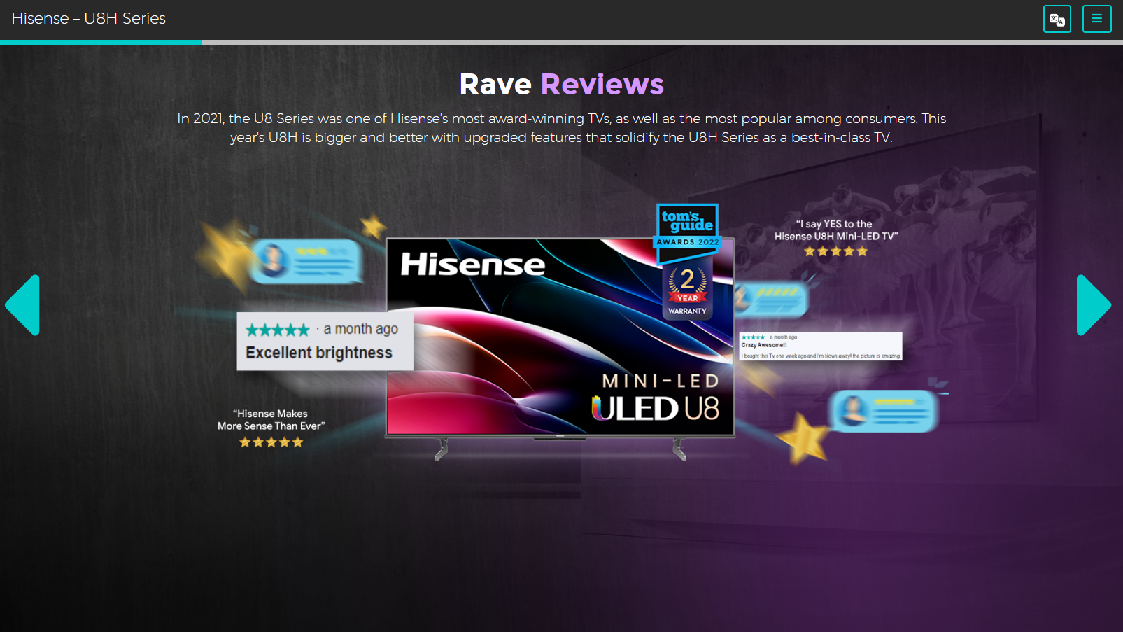 Designed the visual look and feel to reflect Hisense’s premium positioning: high-quality imagery, consistent branding, clean layout, and emphasis on product features.