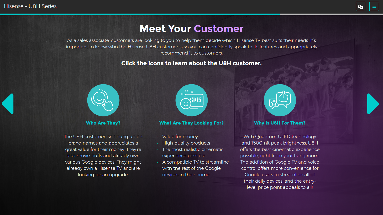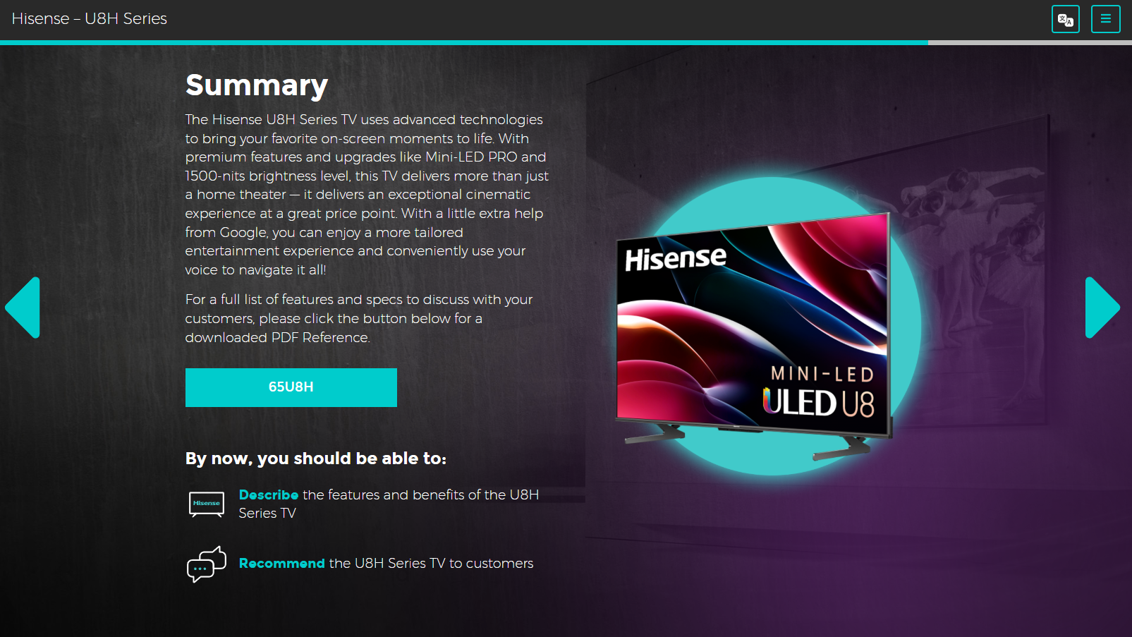 Retail sales associates who need to understand the features, benefits, and selling points of the Hisense U8H television series.